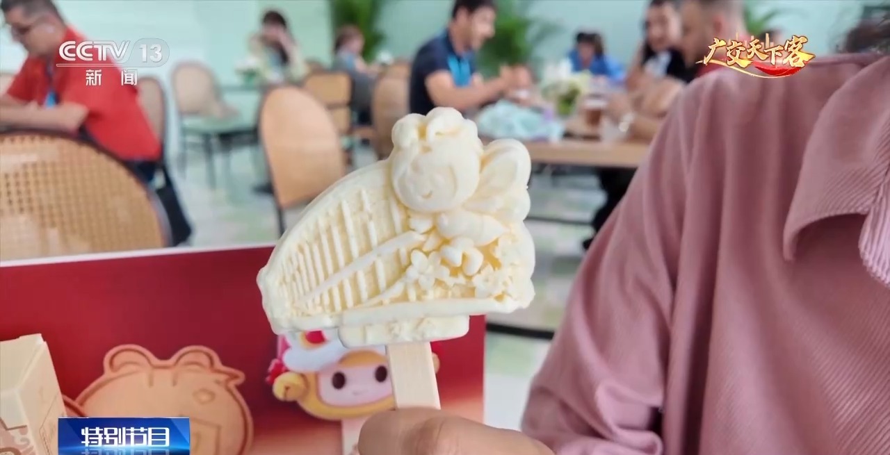 总台记者 朱解语:广交会,它不只和我们的吉利物制型相融合,细心扣问价钱、产物认证以及本地发卖环境。这个冰激凌很是好吃,又为这场商贸嘉会,